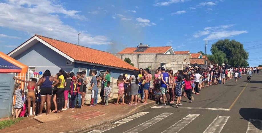No último sábado (17), diversas entidades e pessoas se uniram para levar mais alegria para moradores do Residencial Costa Rica, no bairro Neves. Pelo quarto ano consecutivo, a ação é resultado de uma campanha de arrecadação de brinquedos e doces para crianças em vulnerabilidade social. Mais de 600 senhas foram distribuídas e foram presenteadas crianças de 0 a 10 anos de idades, que vivem no residencial.