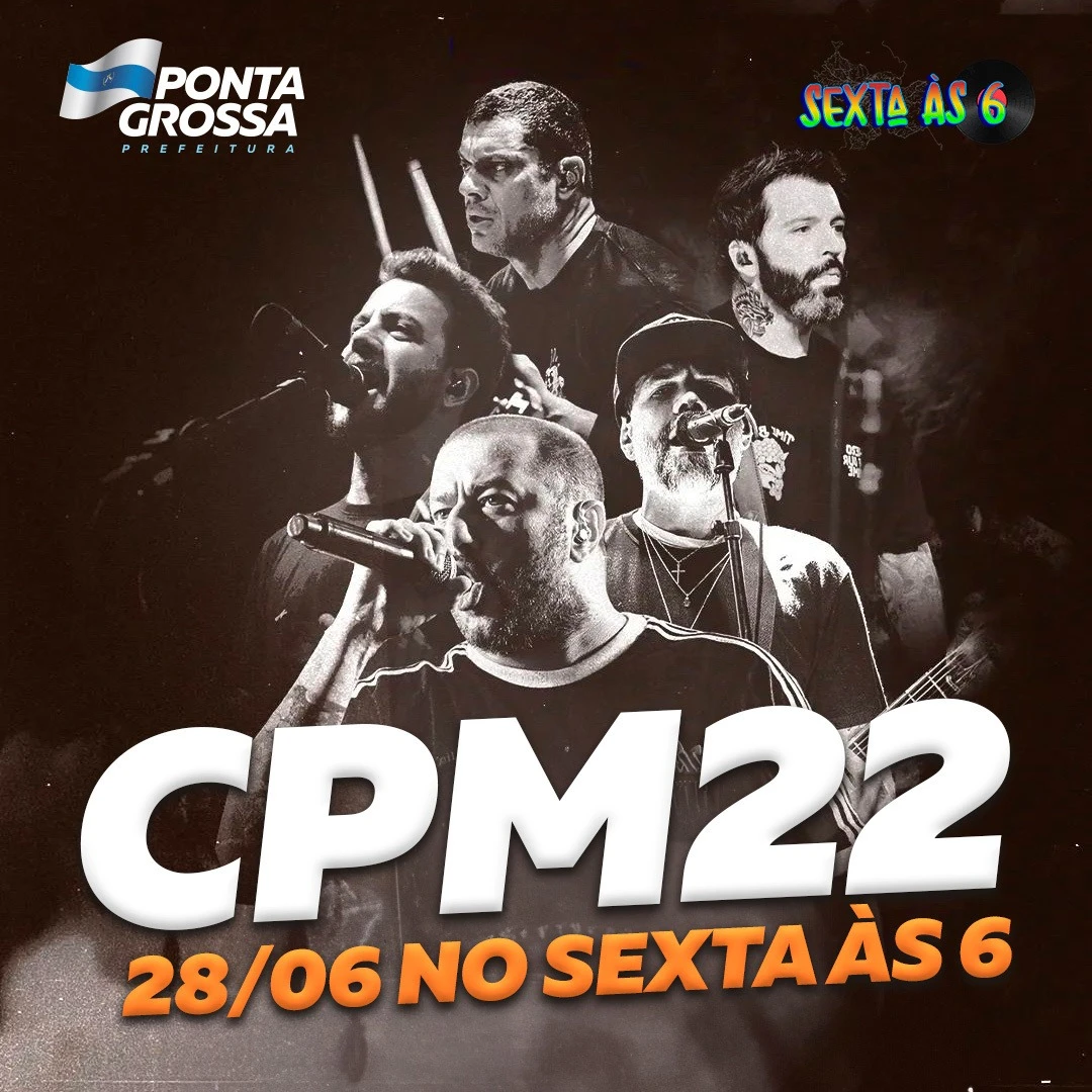 Começa amanhã (dia 28) a temporada 2024 do Sexta às Seis. A partir das 20 horas, o CPM 22, banda convidada para a abertura, sobe ao Palco do Parque Ambiental para levar, gratuitamente, muito rock para o público da cidade e da região. Antes, a partir das 19 horas, os ponta-grossenses do Jamp abrem a noite de atrações. A promoção do Projeto é da Prefeitura de Ponta Grossa, através da Secretaria Municipal de Cultura.