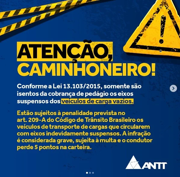 Trafegar com os eixos indevidamente suspensos constitui evasão de pedágio, sujeita às penalidades previstas no Código de Trânsito Brasileiro, incluindo multa e perda de pontos na carteira de motorista. Portanto, é importante que, quando o caminhão estiver carregado, o transportador trafegue com todos os eixos no solo. Quando vazio, é necessário suspender os eixos. Além disso, é essencial que o transportador responsável gerencie corretamente o MDF-e, encerrando o documento ao término do transporte da carga. Isso vai assegurar uma passagem ágil nas praças de pedágio.