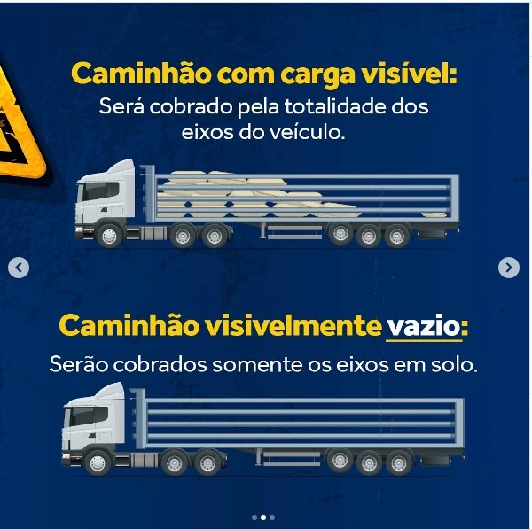 Apartir desta segunda-feira (6/5), as cinco concessões rodoviárias administradas pelo Grupo Arteris iniciarão a cobrança da tarifa de pedágio dos eixos suspensos de veículos pesados carregados, como caminhões e carretas. Essa forma de tarifação abrangerá os veículos comerciais que circularem pelas concessões da Fernão Dias (BR-381/MG/SP), Fluminense (BR-101/RJ), Litoral Sul (BR-116/376/PR e BR-101/SC), Planalto Sul (BR-116/PR/SC) e Régis Bittencourt (BR-116/SP/PR).