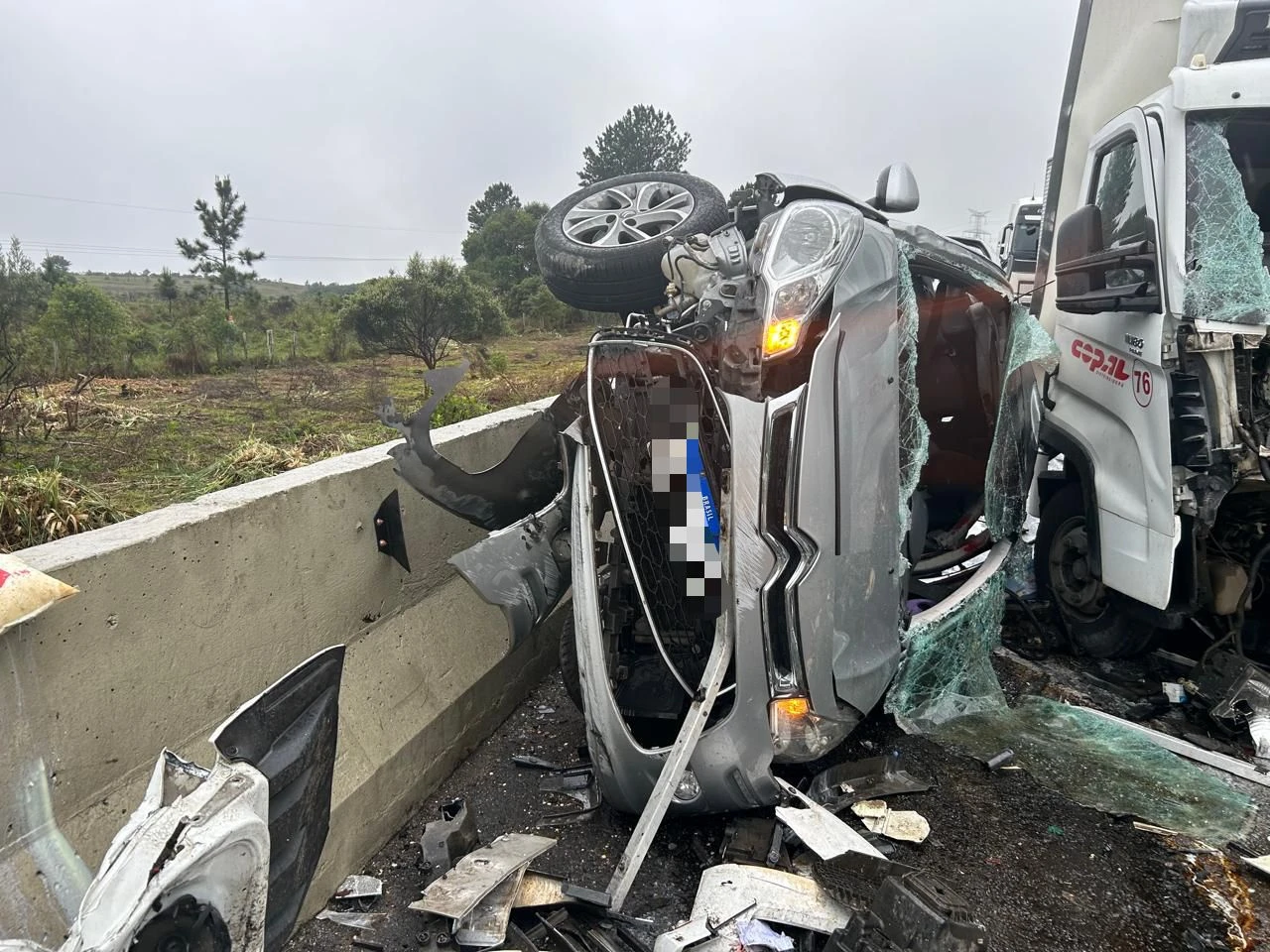 PRF, Corpo de Bombeiros, Concessionária Via Araucária, Polícia Civil e Polícia Científica atendendo a ocorrência.