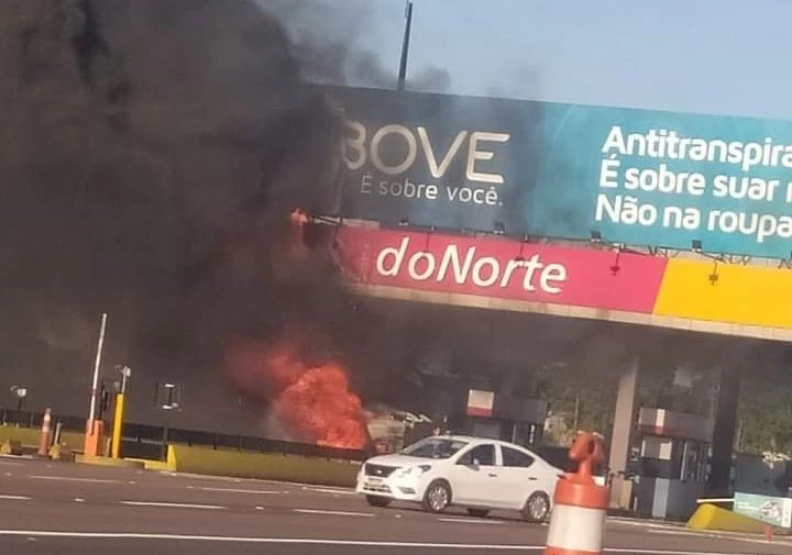 De acordo com informações o motorista da carreta colidiu na mureta da cabine de pedágio da CCR Rodonorte e houve um princípio de incêndio.
