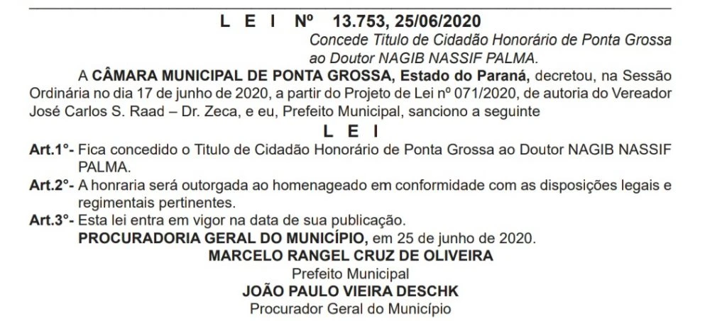O prefeito Marcelo Rangel, assinou na tarde desta sexta-feira (03), a Lei que concede título de Cidadão Honorário ao delegado-chefe da 13° Subdivisão Policial, Nagib Nassif Palma.