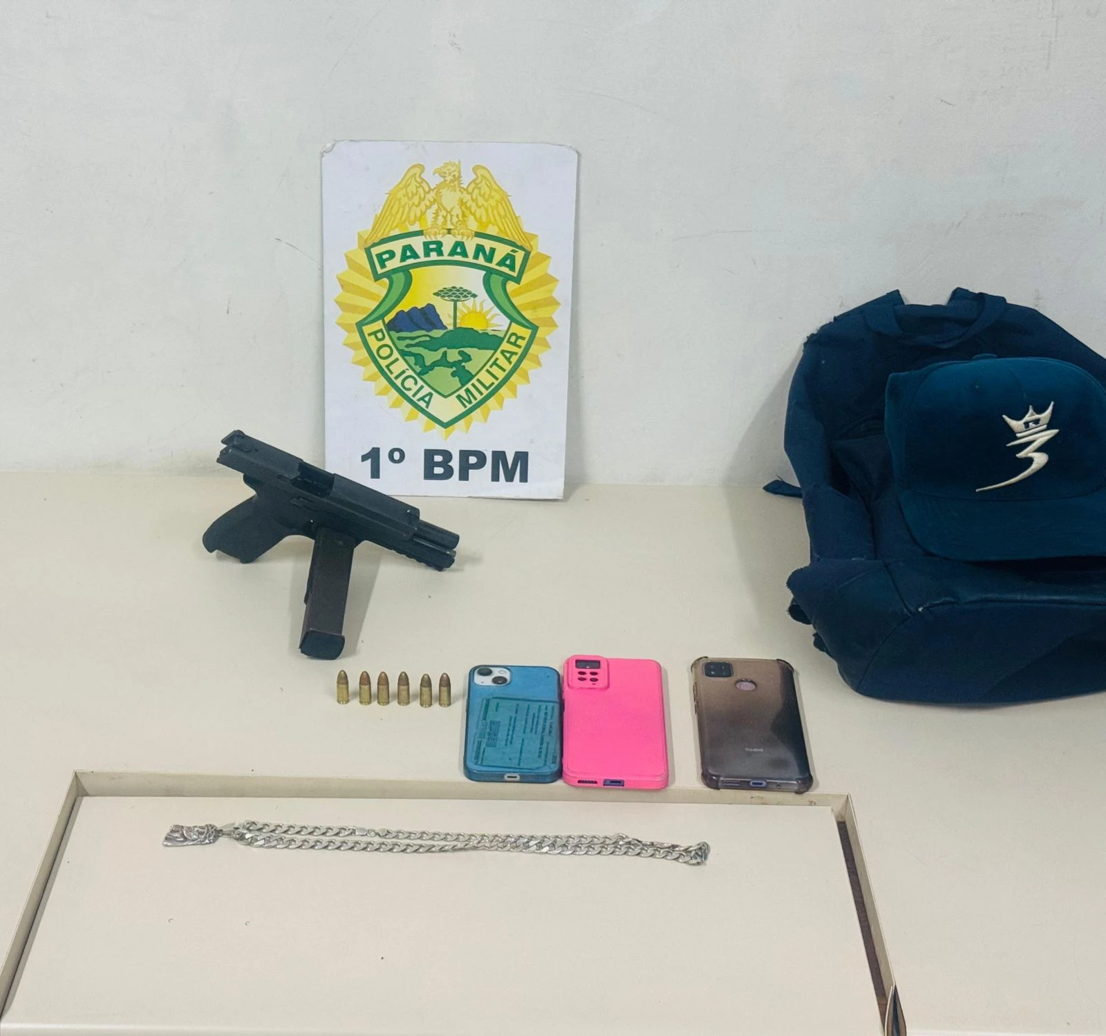 Foi apreendida uma pistola 9mm com carregador estendido que estava com o autor, e recuperado os bens subtraídos.