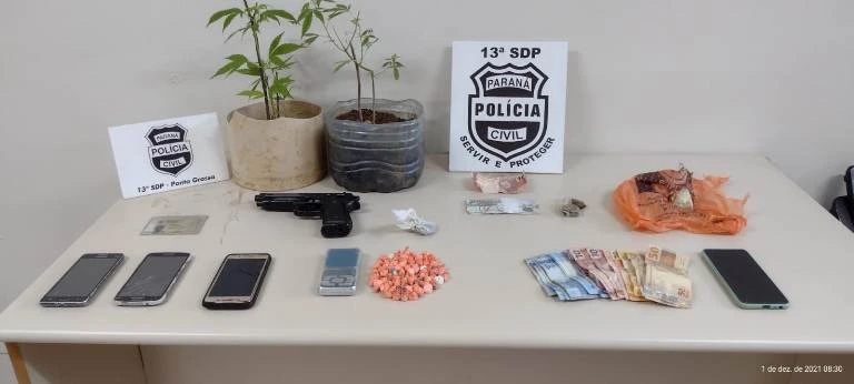 De acordo com a Policia Civil, em uma residência no bairro Uvaranas, localizou-se droga do tipo maconha e o suspeito, teria, inclusive, fugido, inicialmente, da abordagem policial, sendo detido há algumas quadras do local.