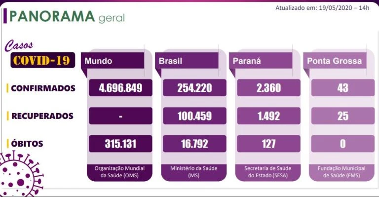 Até o momento Ponta Grossa conta com 43 casos positivos para a doença.