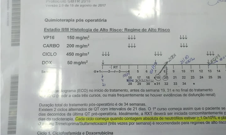 Sara iniciou 30 ciclos de quimioterapia a cada 21 dias ela ia três dias realizar a quimioterapia. “A gente se revezava eu e meu esposo, ele ficava em Ponta Grossa e eu ia para Curitiba. No começo a gente conseguiu ir com o carro da prefeitura só que as vezes ia só pessoas com a imunidade baixa junto no carro, então a gente resolveu pegar o carro nosso de uso pessoal, para poder ir para lá e dar uma comodidade melhor para ela porque ela nos três dias de quimioterapia, ela saia vomitando, passando mal e não tinha como fazer e às vezes a gente tem que sair de Ponta Grossa para Curitiba, então não dava mais e ficava mais difícil”, conta a mãe.