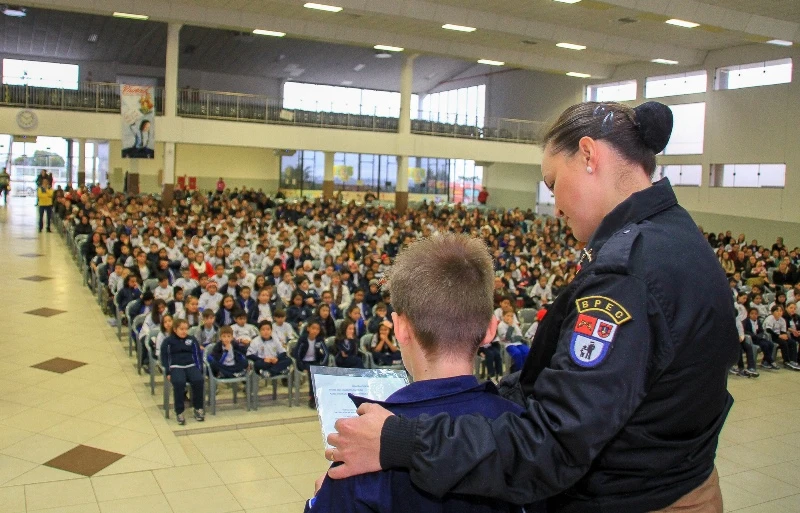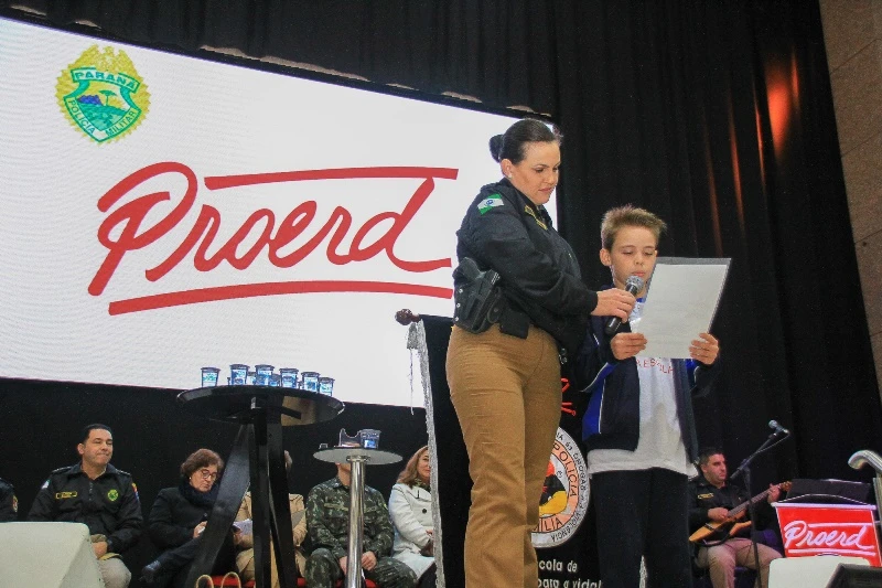 Em uma parceria que busca ampliar os conhecimentos de alunos e seus familiares a respeito do universo das drogas e da violência, a Polícia Militar do Paraná e a Secretaria Municipal de Educação realizaram nesta terça (05/06) mais uma formatura do Proerd. É a primeira de três turmas que participarão do programa neste ano. Foram 1.139 alunos formados, de 26 escolas municipais, os quais receberam da Patrulha Escolar Comunitária diversas lições sobre cidadania, conscientização e formas de enfrentamento sobre o tema.